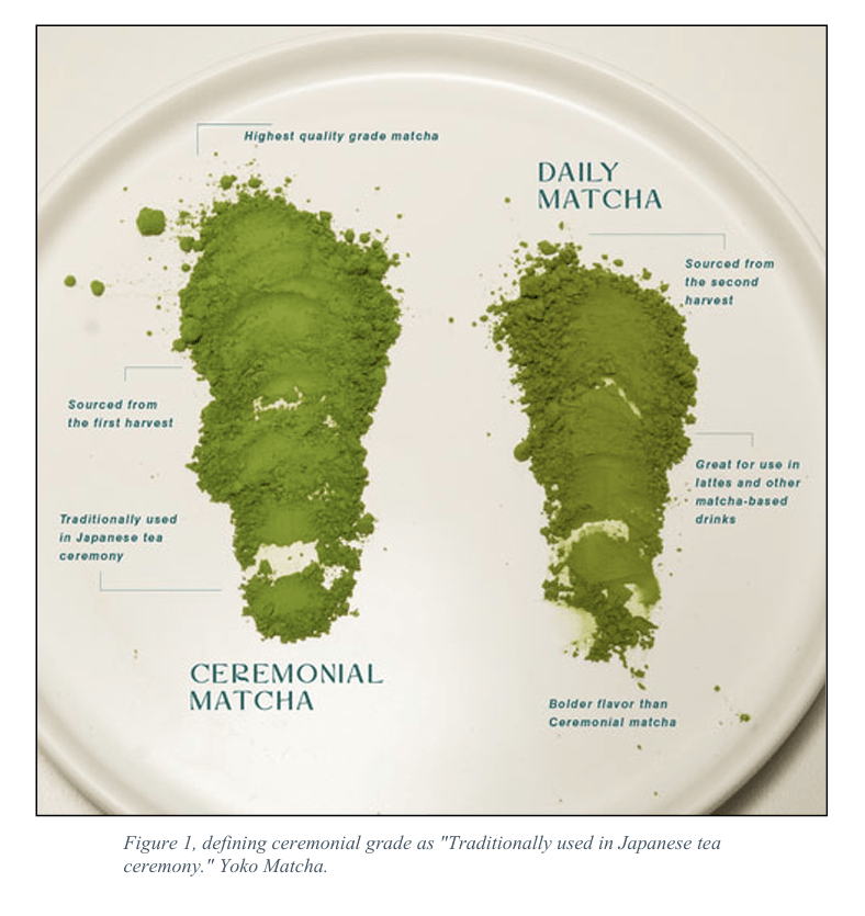 The filing says that while the term “ceremonial grade” is not used for matcha in Japan, matcha producers and Western media sources such as Bon Appetit have used the term to refer to matcha of the highest possible quality, and consumers “ubiquitously” understand that matcha powders with a ceremonial grade designation are superior and “fit for use” in Japanese tea ceremonies, the suit relays.
