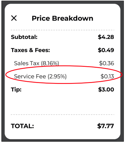 On the mobile order screen, the case shares, a breakdown appears of a customer’s subtotal, taxes and fees, tip amount, and order total. Next to the taxes and fees line, however, is a small, light gray question mark icon that’s “nearly imperceptible to reasonable consumers due to its color and font size,” the suit relays. It is only upon clicking this icon that a consumer can learn that a 2.95 percent service fee has been added to their order: