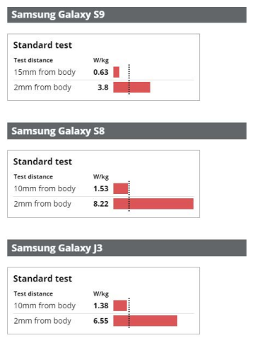 According to the 44-page lawsuit, testing of Apple and Samsung’s smartphones has shown that the potential RF exposure for an individual carrying an iPhone or Galaxy in their pants or shirt pocket was over the exposure limit, sometimes “far exceeding” the threshold. The complaint cites testing conducted by RF Exposure Lab on behalf of the Chicago Tribune that measured 12 different cell phone models—three iPhone 7s, an iPhone X, an iPhone 8, an iPhone 8 Plus, a Galaxy S9, a Galaxy S8, a Galaxy J3, a Moto e5 Play, a Moto g6 Play and a Vivo 5 Mini—for RF radiation in accordance with FCC rules. Each phone was subject to two tests, one in which each was placed the same distance away from the outside of a tub containing liquid specially formulated to simulate the electrical properties of human body tissue and another for which the phone was placed two millimeters from the tub, a smaller distance “meant to reflect a phone being carried in a pants or shirt pocket.”