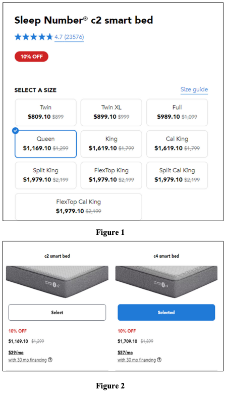 “Defendant did not sell its Products at the advertised strike-through price and had not done so for at least 90 days when Plaintiff made her purchase, but it was likely doing so for much longer,” the suit claims, alleging Sleep Number employs the same deceptive pricing tactics for all its mattress products.